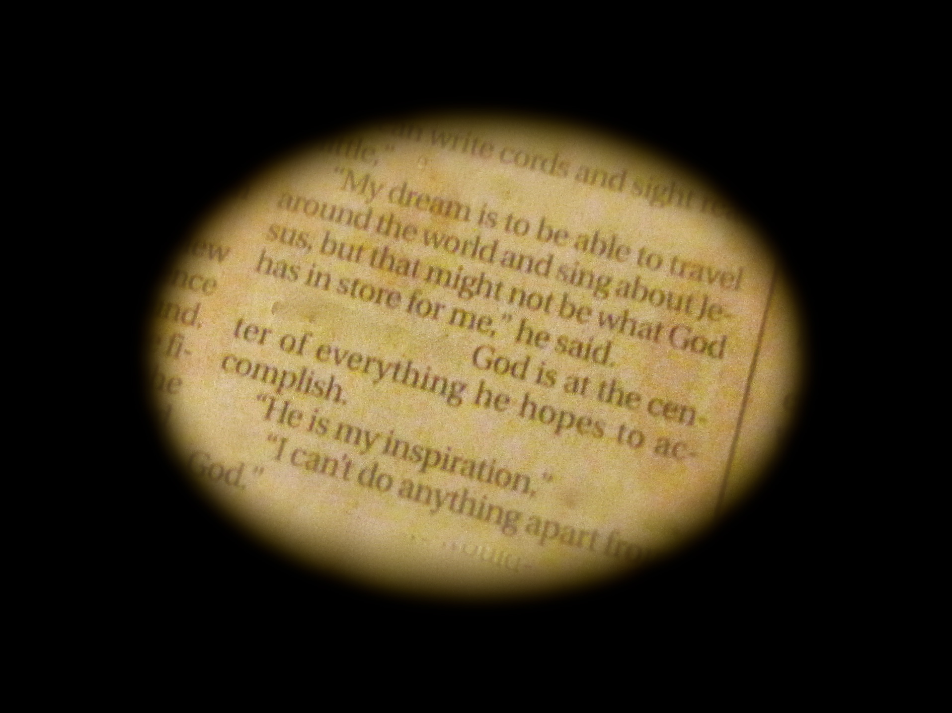 Cleaning out the china cabinet tonight, I found a stack of newspapers from summer of 2010. They were tucked away for memory’s sake, but tonight, they were a sweet smile from the Savior. No doubt His plan is far greater than any we could imagine, He knew exactly the moment I should stumble upon the words spoken by my son nearly 3 years ago, recorded in newspaper print.